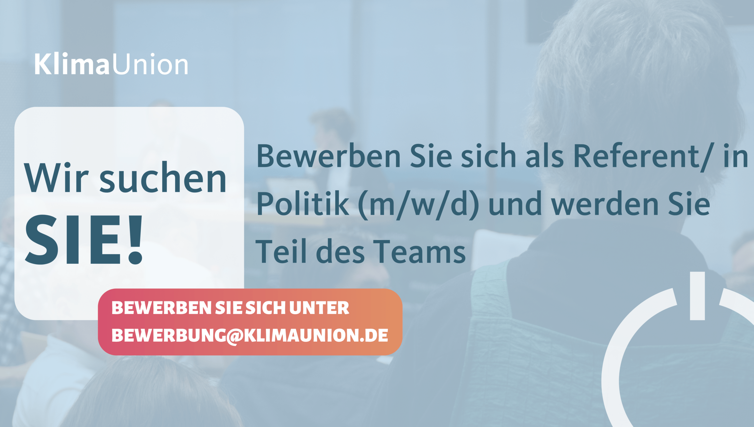 Vollständige Stellenausschreibung: KlimaUnion_Stellenanzeige_Referent/in_Politik